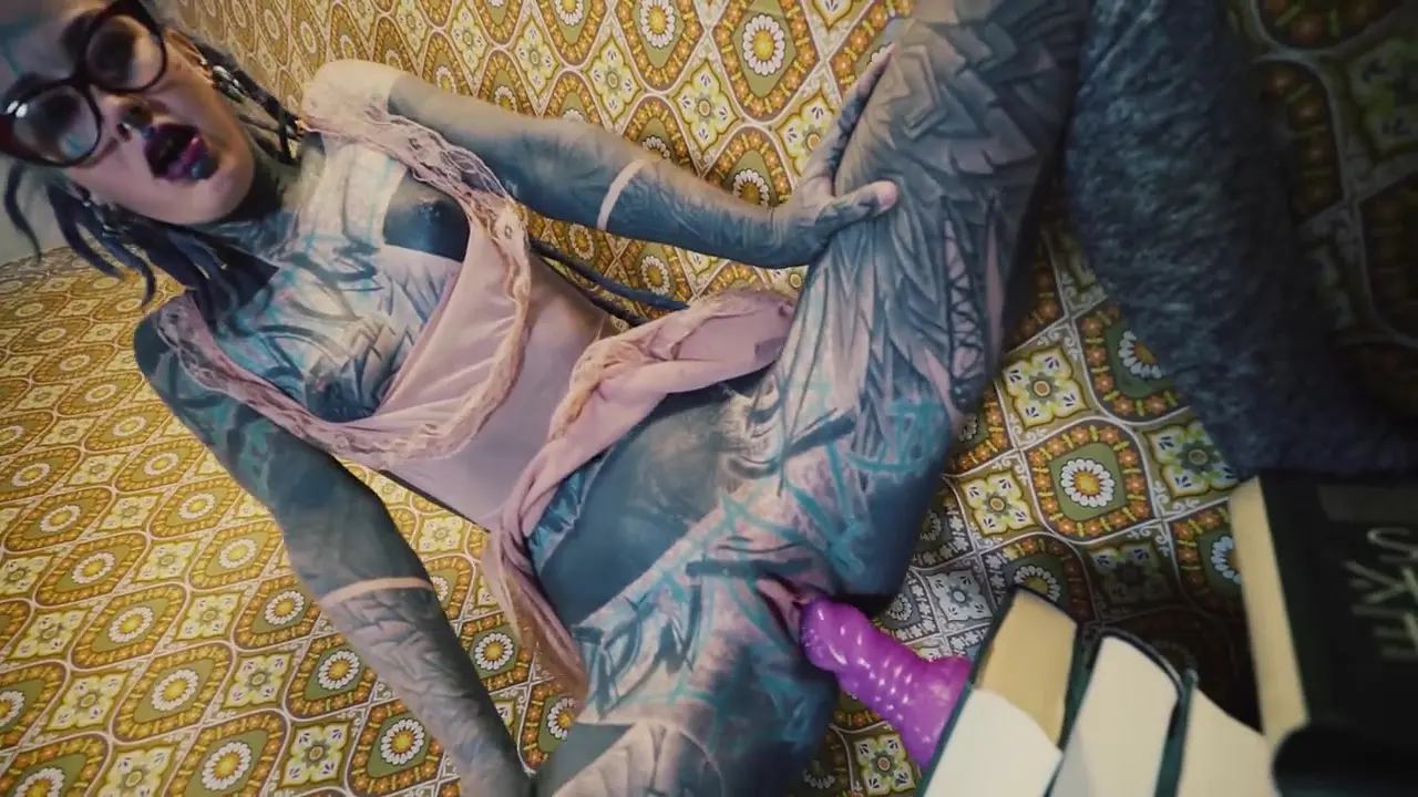 Heavily tattooed and free-spirited girl shows off her