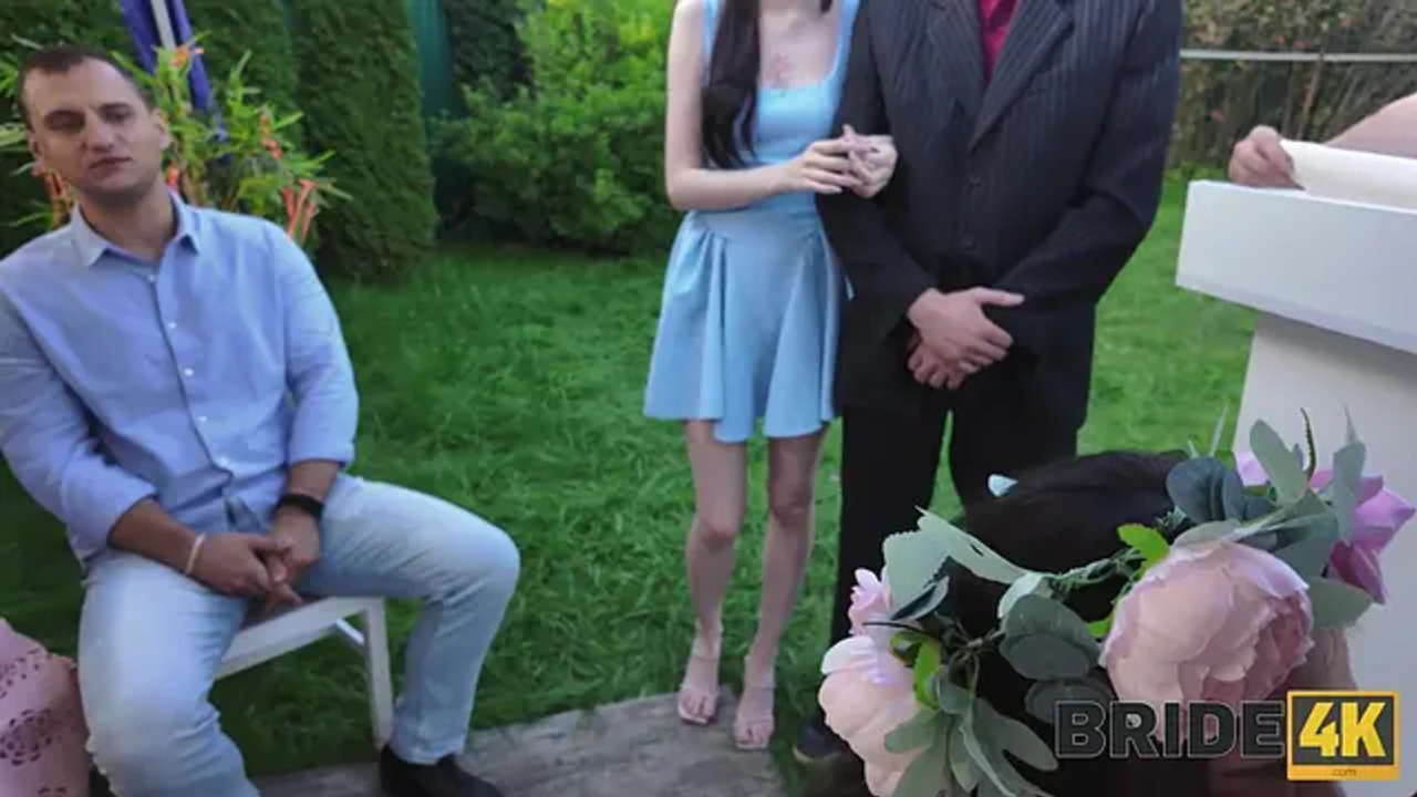 Hot and hot newlywed bride gets her giant natural boobs out in front of the whole wedding party. She takes a rigid anal pounding right on their special day while wearing her fancy wedding dress. The crowd cheers as they continue their weird, Russian-style tradition.